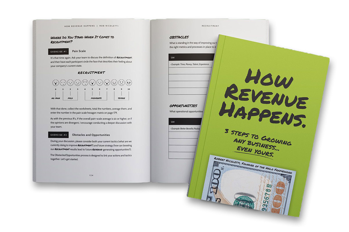 Packed with business insights, real-world anecdotes, and practical exercises, How Revenue Happens gives you a framework to achieve your vision of success. Author and HALO founder Rob Nicoletti takes you step by step to fix the 6 common pain points faced by every business (yes, even yours).